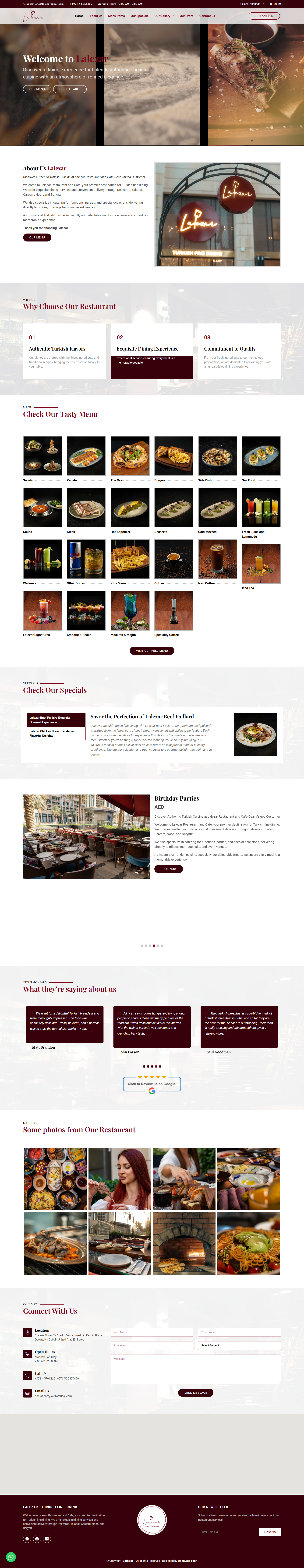 Welcome to Lalezar Restaurant and Cafe, your premier destination for Turkish fine dining. We offer exquisite dining services and convenient delivery through Deliveroo, Talabat, Careem, Noon, and Spryntz.