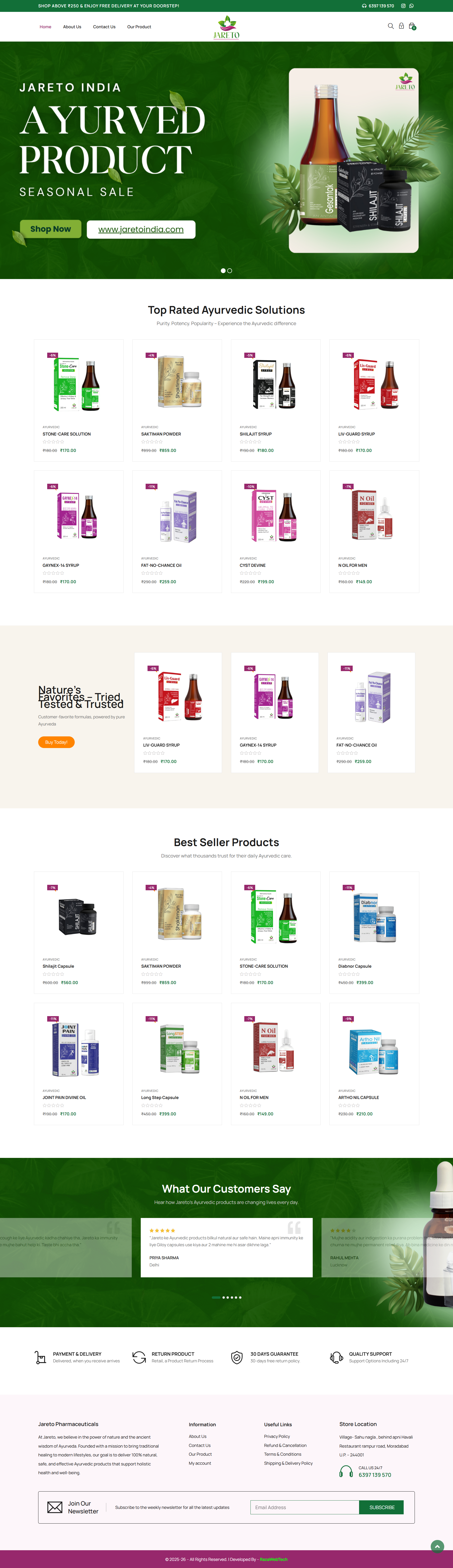 At Jareto, we believe in the power of nature and the ancient wisdom of Ayurveda. Founded with a mission to bring traditional healing to modern lifestyles, our goal is to deliver 100% natural, safe, and effective Ayurvedic products that support holistic health and well-being.